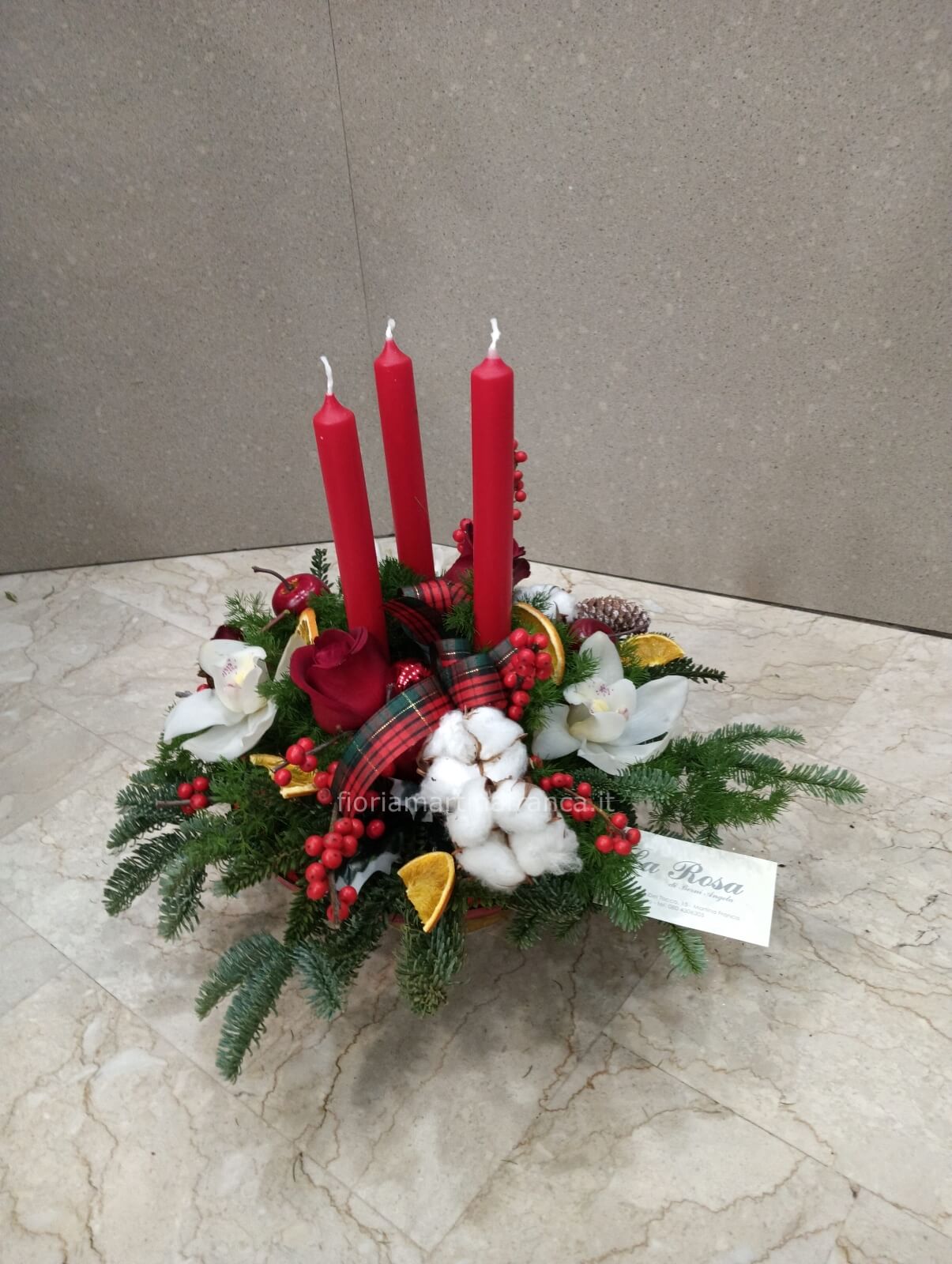 Composizione centrotavola diam 40, 3 candele, correlata al prezzo scelto
