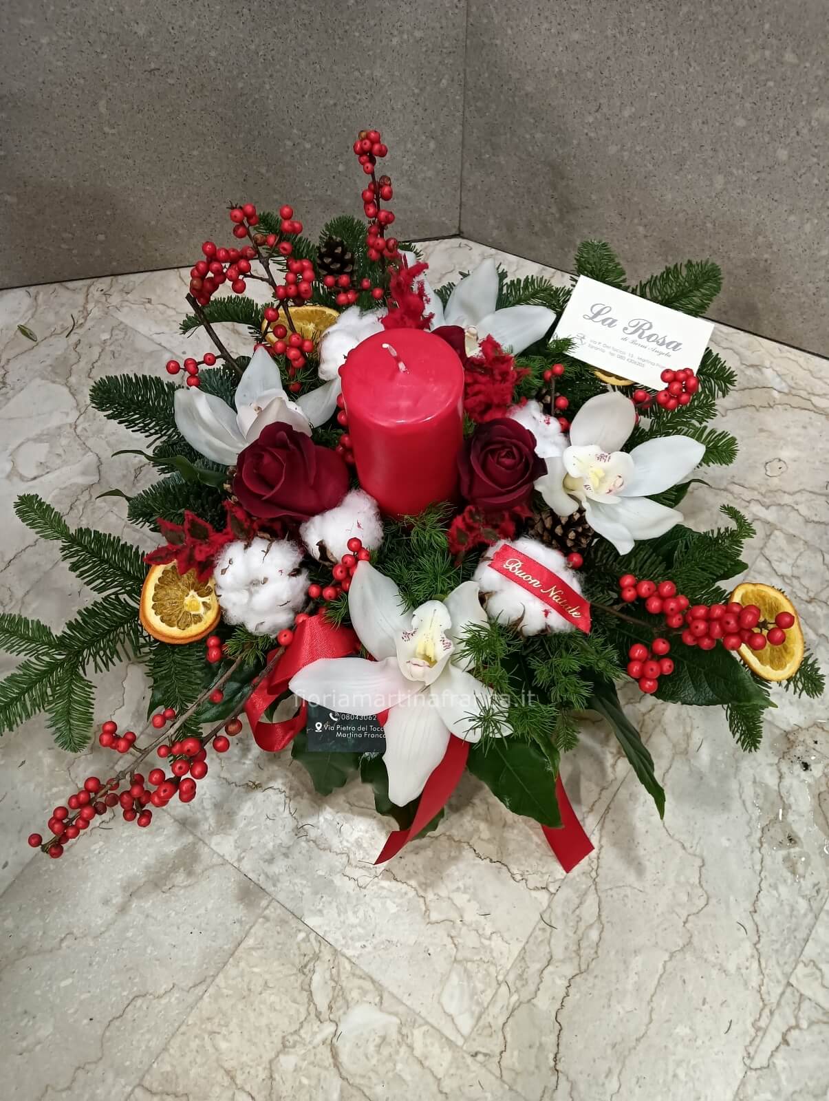| Composizione natalizia bianco/rosso con candela diametro c.a 40 cm Cod. 122868 |